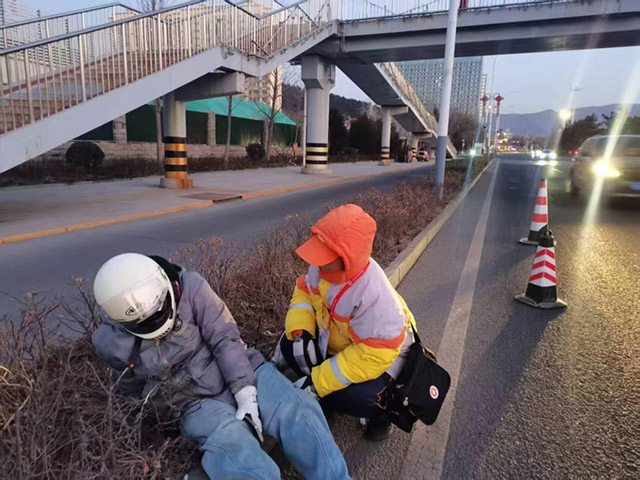 1月12日早高峰,门头沟区引导员姜翠萍和李秀丽在前往永定中学途中,发现一个女孩骑车被石头绊倒,脚受伤动不了。他们赶紧上前搬走路面石块,将摩托车推到安全位置,设置好警示锥桶,并一直陪在女孩身边安慰她,直到救护车到来。