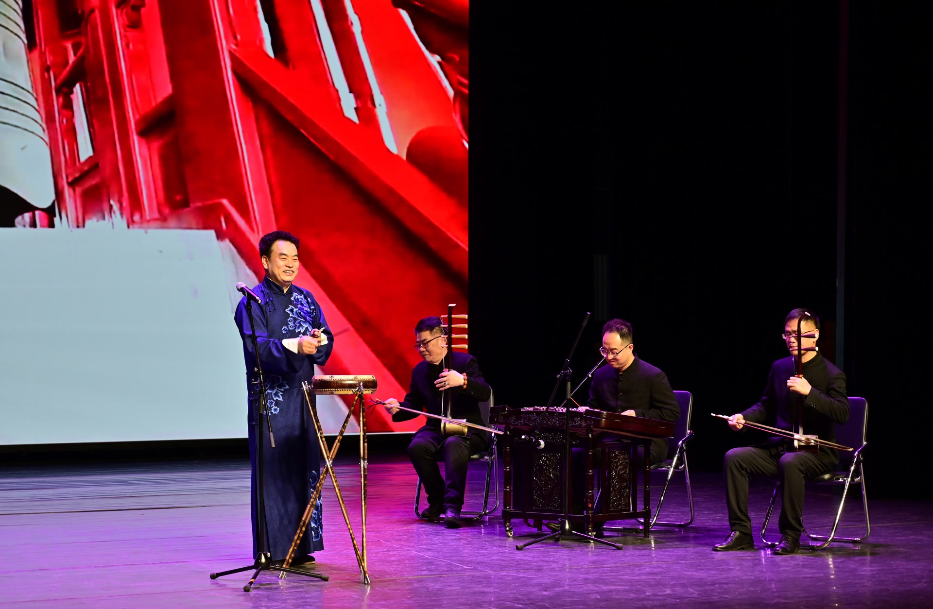 在东城区文化馆风尚剧场,北京市级非物质文化遗产项目北京琴书代表性传承人王树才登场讲述《永乐大钟的传说》。随后,东城区特色宣讲队从历史、民生、发展三个维度解读北京中轴线的传承密码,带领观众沉浸式感受文化遗产在保护与发展中焕发的时代活力。宣讲员张喆结合新老照片讲述了城市更新保护工作的点滴:“老城之所以有魅力,是因为这里的人和事。让老城焕发新生,正是要将历史记忆和人情味写进现代城市规划,连接过去与未来。”