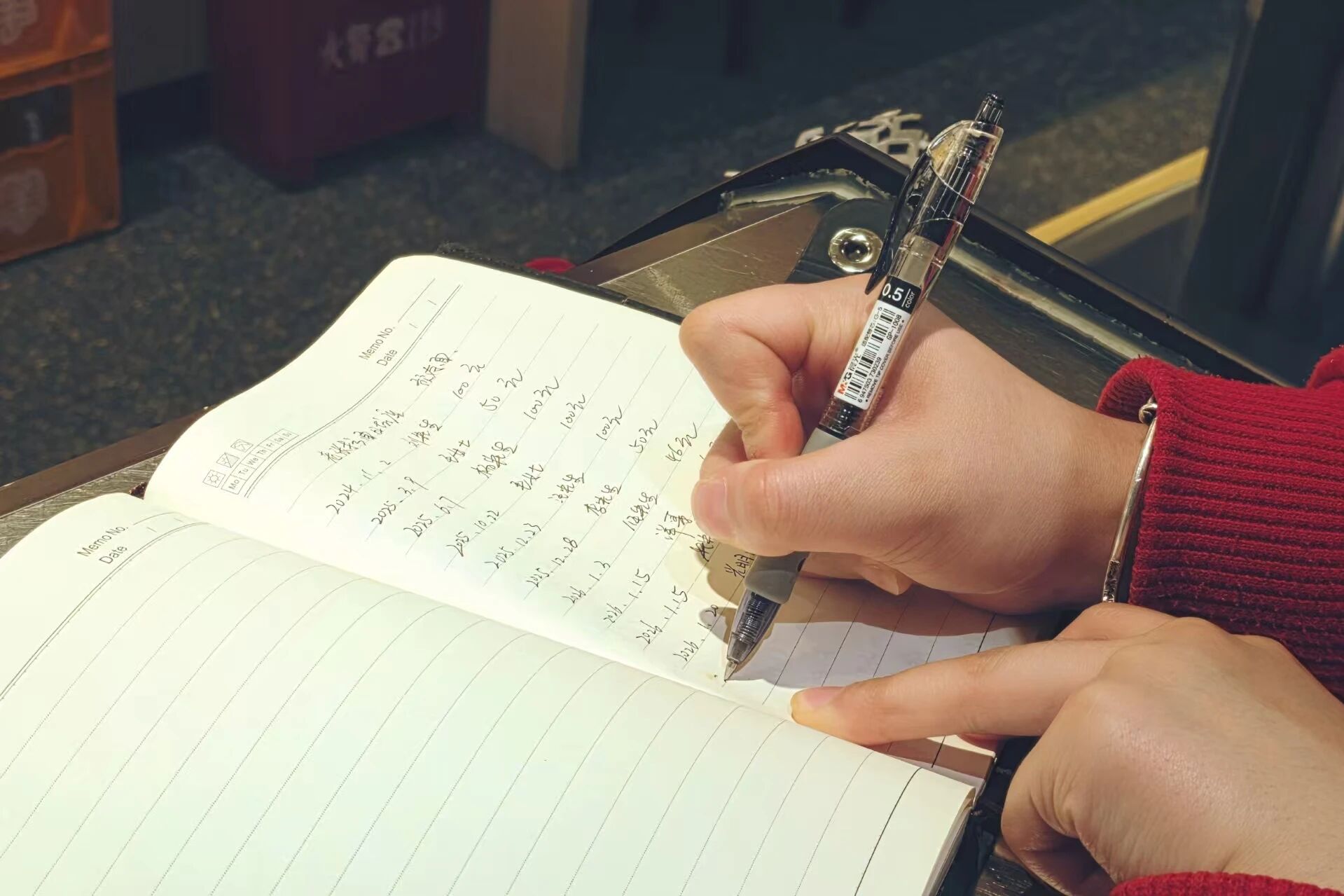 店里的柜台上,躺着一本边角已磨损的泛黄笔记本。里面密密麻麻记录的,不是营收,而是一笔笔“存面”善款:“3月5日,不知名顾客,存5碗。”“1月17日,严艺贞,存2碗。”……金额从几十到几百不等。