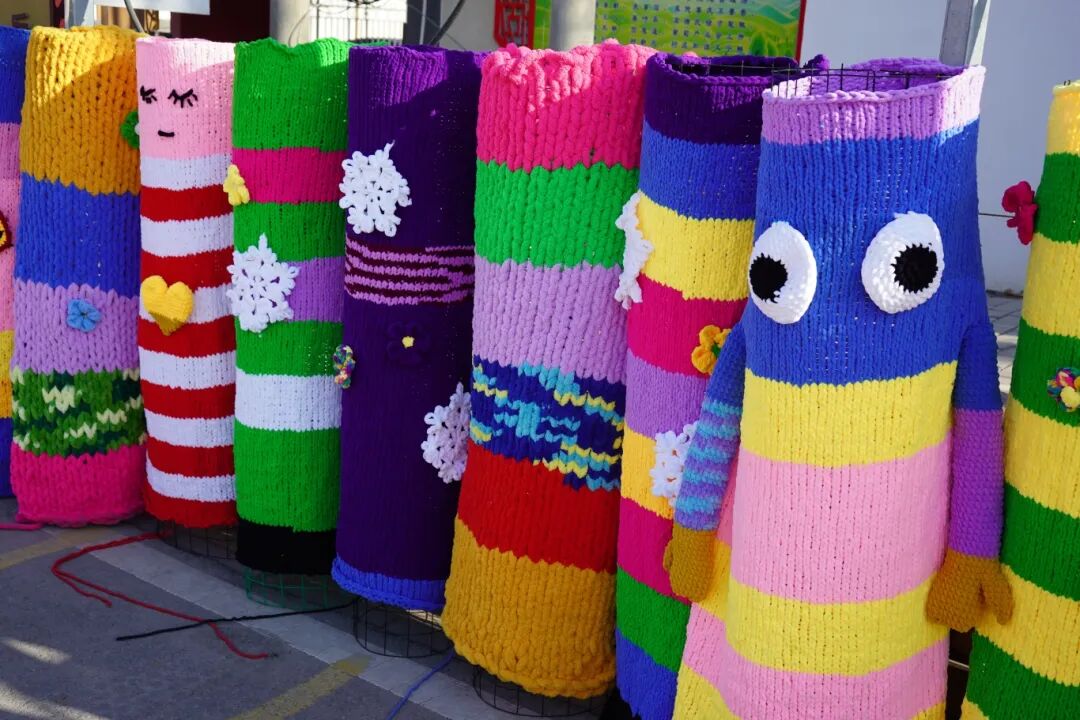 太可爱了吧!冬日寒风凛冽,北京延庆张山营镇后黑龙庙村里却是一幅“萌翻人”的画面。街边的树木,道边的墙壁和灯杆都被穿上了暖绒绒的“毛衣”,五彩斑斓的毛线编织,让冬日的村庄温暖又靓丽。