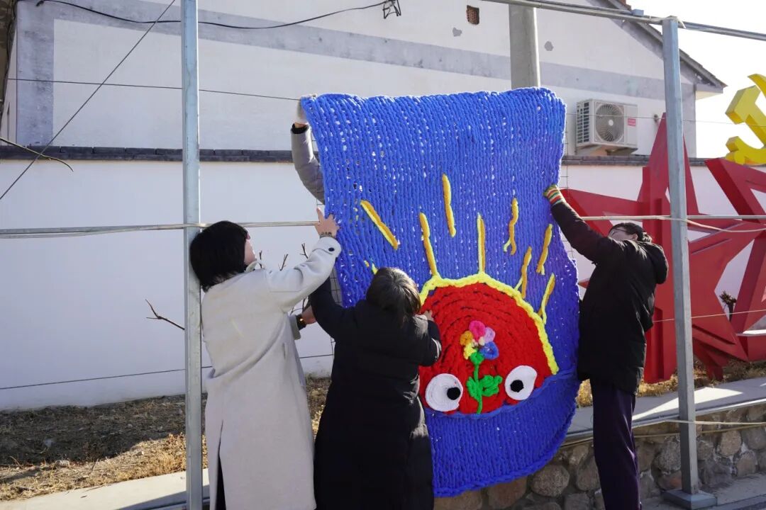 活动自2025年12月中旬开始,持续近两个月时间。期间,来自后黑龙庙村的村民、北京建筑大学未来学院师生团队齐心协力,共同创作,用巧手将五彩毛线变成了形态各异的钩织作品。特别是,在培训中,志愿者还带领村里的孩子们,耗时数周共读《彩虹色的花》,并精心编织《彩虹色的花》巨型绘本,在编织的温馨氛围中,开展了一场特别的亲子阅读之旅,增强了孩子们对与家乡的热爱和认同感。
