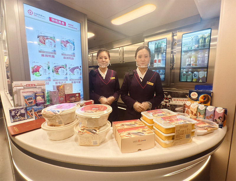 高铁列车餐食品类更加丰富——国铁北京局新推出四款京铁佳膳年味套餐供旅客选择,结合不同线路旅客的餐饮习惯和口味需求搭配餐食。中铁旅集团京铁列服公司党总支副书记杜小征介绍,“套餐紧扣年节主题,食材选用梅菜扣肉等年节元素,套餐包装喜庆,在中国红主色调的基础上装饰有金色祥云纹,搭配骏马奔腾、高铁飞驰等经典元素,寓意马到成功,一路长虹,还有一些特色地方菜,比如东北茄蛋酱拌饭,木须肉拌饭等餐品还原家常味道。”