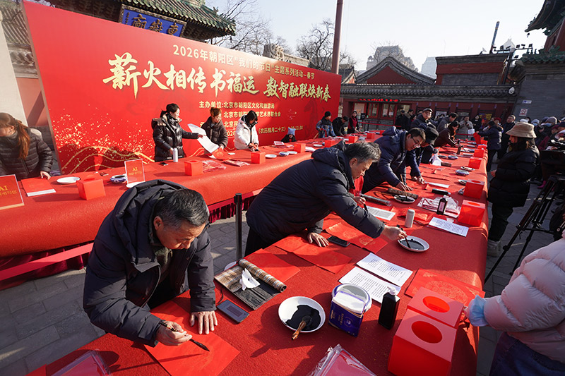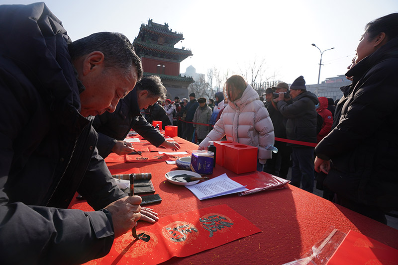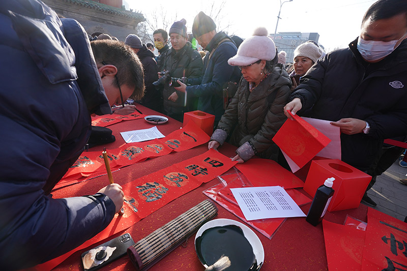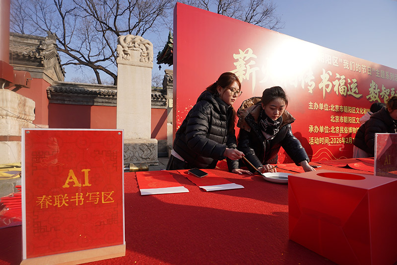 2月10日,北京民俗博物馆举办小年送春联活动,“传统书写+数字体验”,在延续笔墨送福、迎接新春美好的同时,将春节的祝福融入联语中,为游客送上福气满满的墨香好礼。