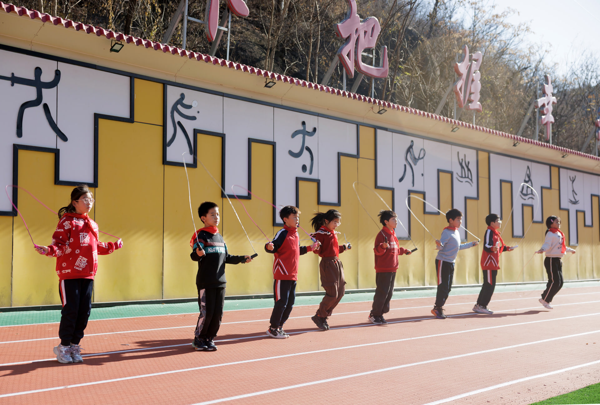 11月11日,密云区冯家峪镇中心小学,孩子们在修葺一新的操场上做运动。北京日报记者 和冠欣摄