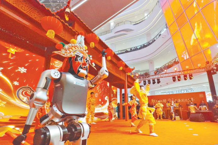 今年,本市很多庙会上都能看到机器人的身影——大都新春庙会“未来广场”上,来自松延动力、宇树科技、小米、智元等多家企业的10余款人形机器人、机器狗、仿生机器人整齐列队,弹吉他、舞狮、跳街舞、连续空翻;北顶娘娘庙庙会上,机器人与仿生机器狗组成祥狮战队献上“科技炫舞秀”,引得人们纷纷打卡;景山公园寿皇殿广场上,机器人舞蹈表演吸引众多游客驻足观看……科技加持的春节为人们带来不一样的体验。