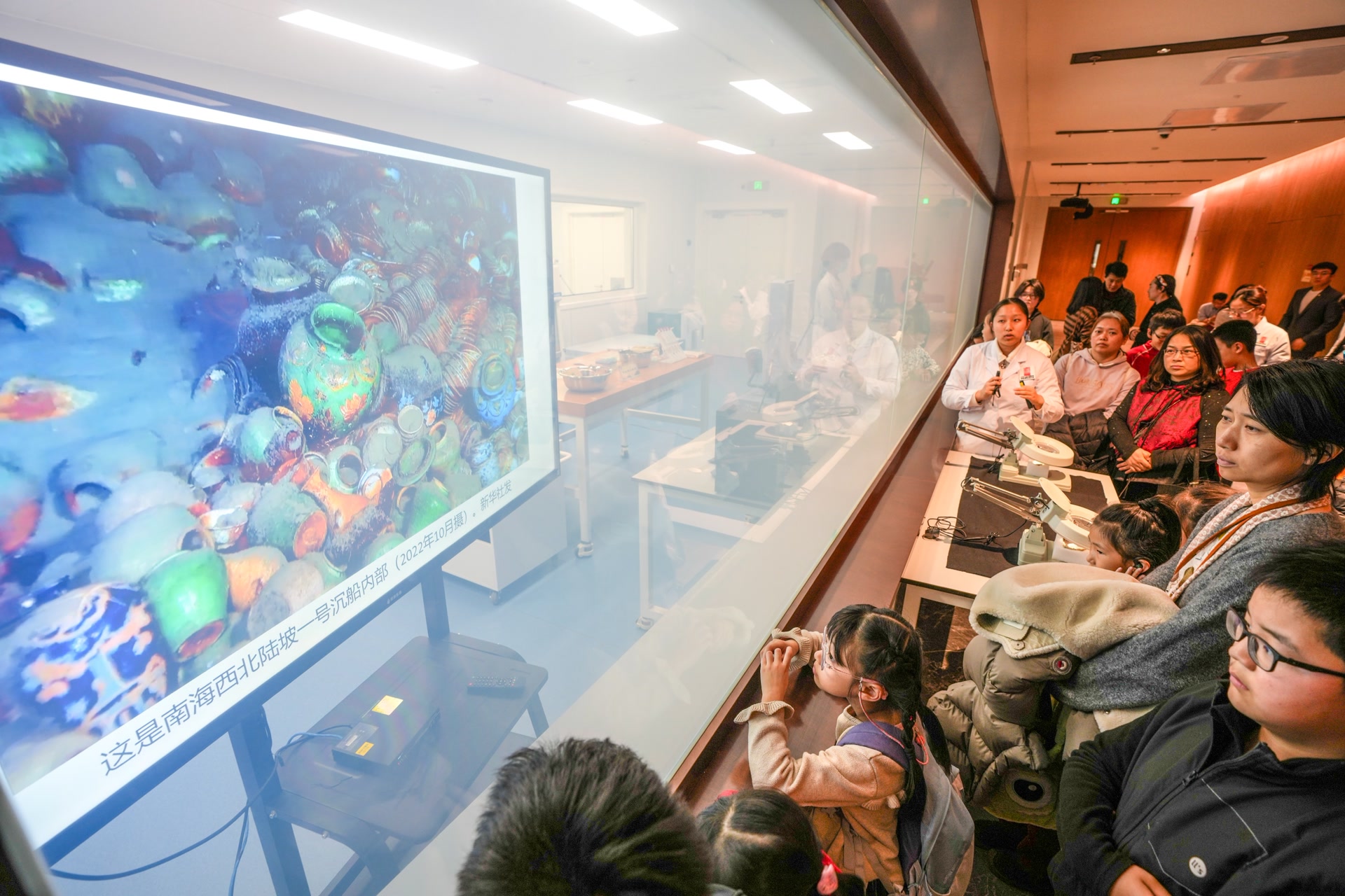 “这些来自南海沉船的文物在海水中浸泡了500多年,富含大量的盐分,从海底打捞上来后,需要先用去离子水给它们‘泡澡’。”走进北京大运河博物馆文物保护中心,助理馆员张梦雷站在展示区的走廊里,为观众科普出水陶瓷文物保护的科学原理。隔着玻璃窗,实验室里,另一位工作人员在工作台前专注操作,运用科技仪器检测陶瓷碎片中的盐分。