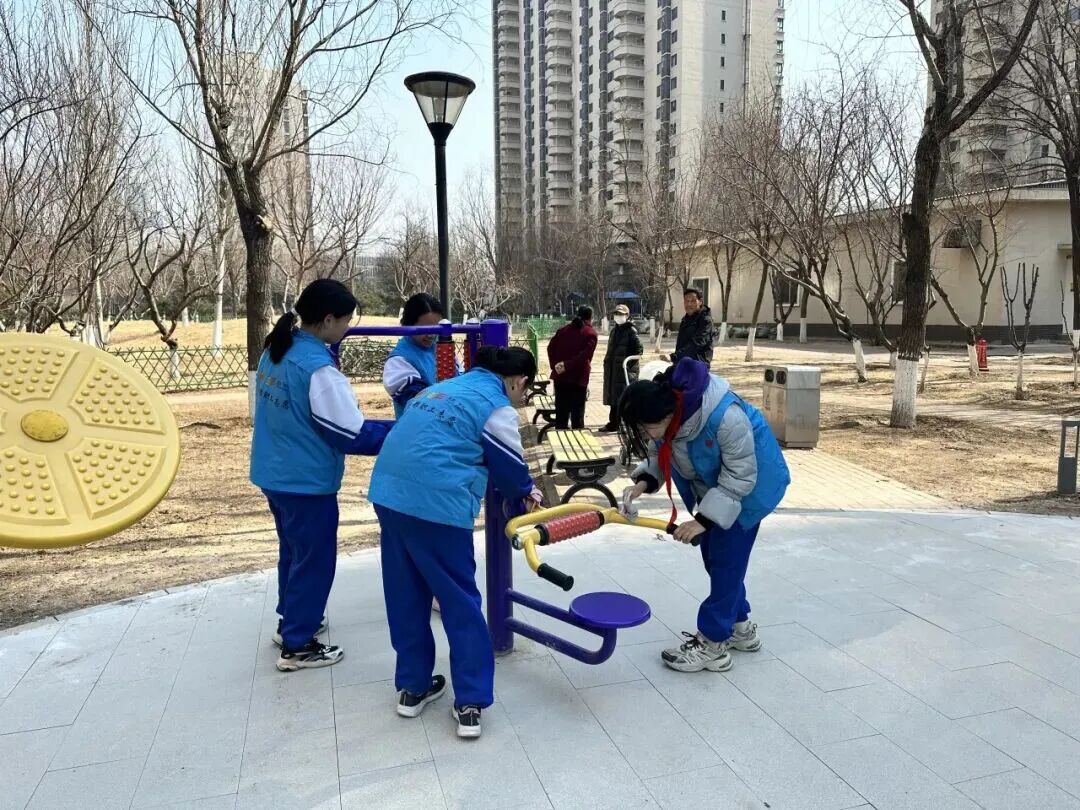 以志愿服务为重要载体,学校构建起特色鲜明的常态化志愿服务体系。作为全国首个“中学生学雷锋慈善公益联盟发起校”,北京十二中打造了覆盖全校各年级的1400余人校级志愿服务队,累计服务时长超1.7万小时,形成“校队统筹、分队联动、全员参与”的志愿服务格局。服务队下设校园环保、志愿讲解、图书馆服务、赛会服务等特色分队,精准开展校内志愿服务;同时坚持“走出校园、服务社会”,组织学生深入社区、养老院、公共场所开展义务支教、敬老爱老、文明引导等活动。