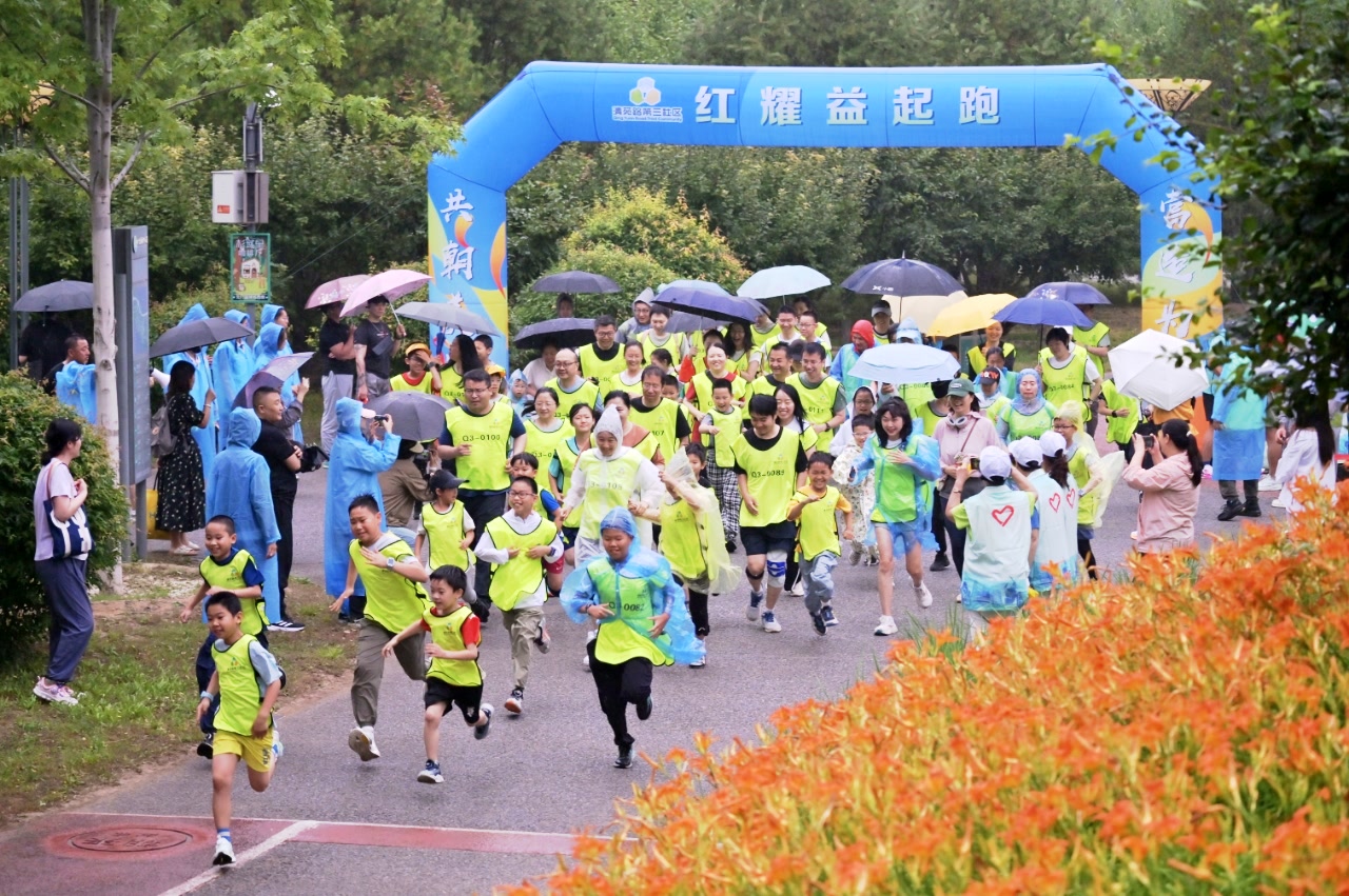 跑团带动整个社区形成了“邻里互助”的和谐氛围。去年6月,社区牵头组织了一场公益健康跑。潘琳记得,活动当天一早,天空就下起了蒙蒙细雨,本以为参与人数不会多,没想到现场来了200多人。跑团成员带着全家“老中青”三代齐上阵,孩子们冒雨坚持跑完了3公里,老人们穿着雨衣做好后勤服务,有摄影特长的年轻人主动为大家拍照录像……大家各司其职、相互配合,整场活动温馨又热烈。