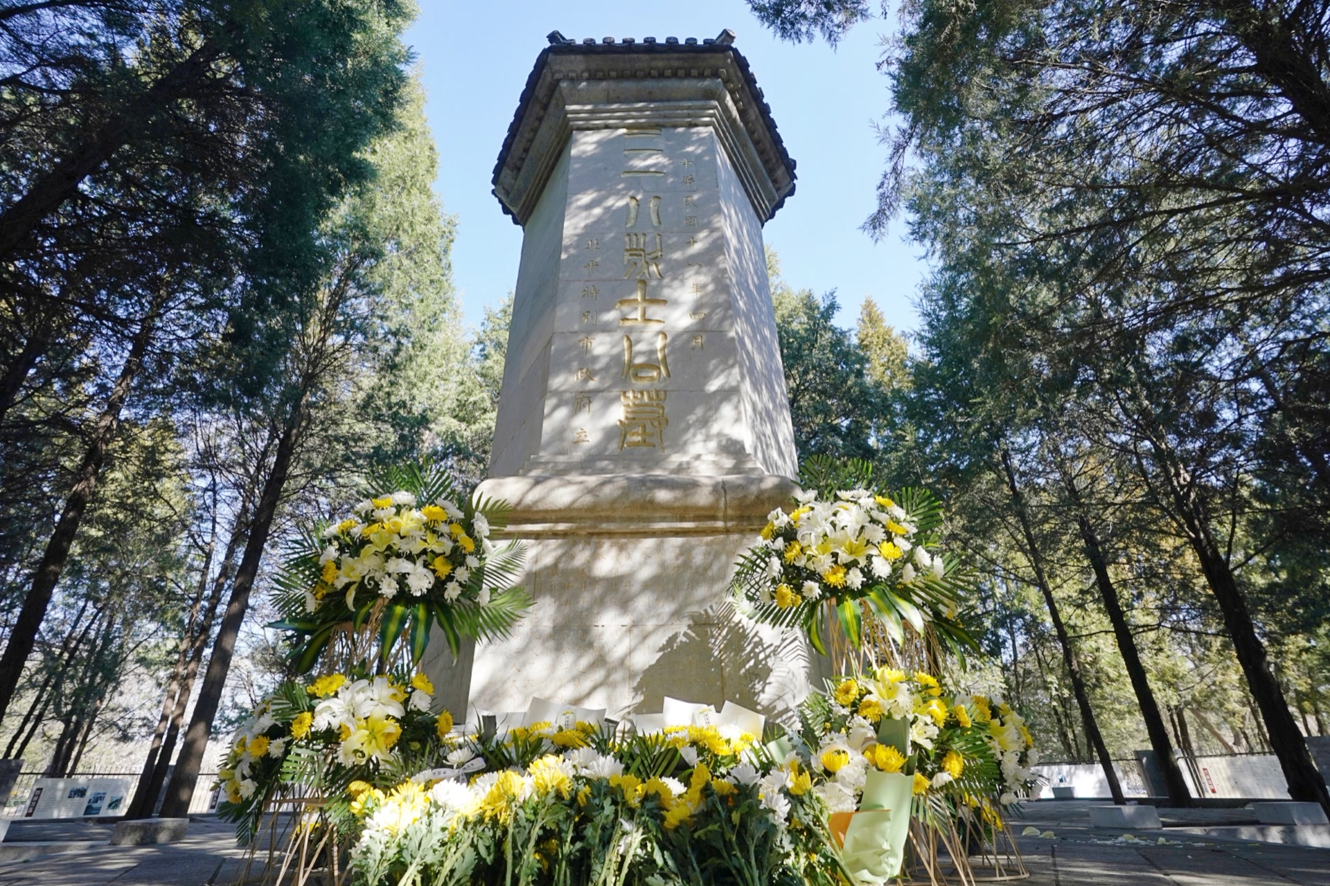墓园中央,那座高约五米的六面体汉白玉石碑静静矗立,碑身上“三一八烈士公墓”七个金色篆字在晨光中熠熠生辉,碑座上镌刻着可以考证的39位烈士的姓名与籍贯。刘和珍、杨德群、魏士毅……一个个名字清晰可辨,仿佛仍在无声地诉说着百年前那些年轻生命的赤诚与勇毅。而今天,新一代青年在这里许下的承诺,正是对英魂最好的告慰。