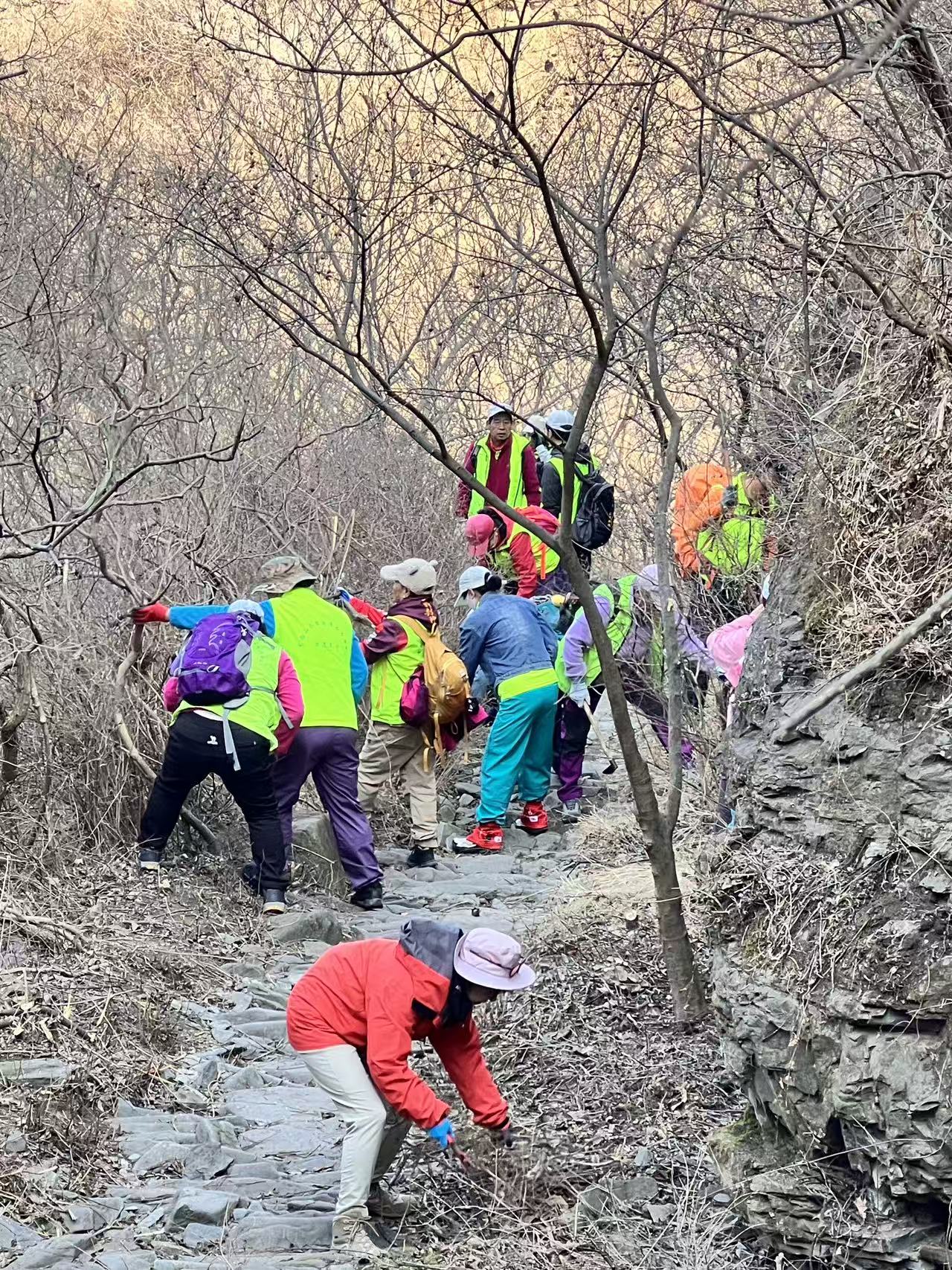 近日,京西山水古道清山志愿队的50余名志愿者,对京西古道东山段开展清障拾荒作业,让被杂草荆棘和杂物覆盖的古道重现原貌。