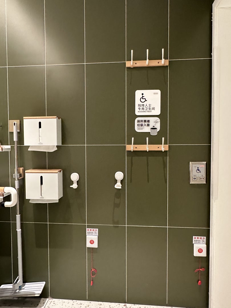 那伽树无障碍厕所里双高度设置的纸巾盒和挂钩
