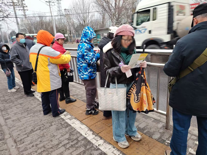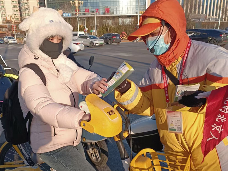 昌平区引导员多点发力,在公交站台、校园周边及9个重点路口开展新规普法宣传。现场,引导员们向过往市民发放宣传折页、讲解新规核心内容,对不文明骑行行为进行柔性劝导;他们还把普法融入日常服务,在清理站台垃圾、规范码放共享单车时同步科普安全骑行知识,引导乘客有序乘车、为市民指路时,也不忘贴心提醒一句:“骑电动车记得戴头盔,安全第一。”