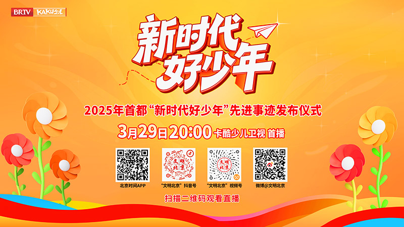 3月29日晚8点,2025年首都“新时代好少年”先进事迹发布仪式将在北京广播电视台卡酷少儿卫视首播,北京时间客户端以及“文明北京”视频号、微博、抖音同步直播。现场将集中发布30位首都“新时代好少年”的先进事迹,8位好少年分享自己在科技创新、文化传承、民族团结、生态保护、自强不息、红色宣讲等领域的成长历程。