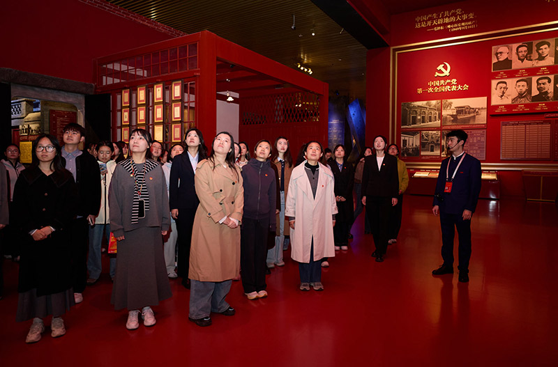 启动仪式后,学生们在讲解员的带领下走进党史展览馆参观学习,在长征等展区开展主题宣讲。在阶梯教室,老师结合展览元素和教学内容,组织学生交流分享。“这是一次深刻的红色精神洗礼。”对外经济贸易大学学生韩昀呈说,“从先烈身上,我感受到了赤诚的家国情怀和勇毅的奋斗精神,这将成为我今后学习成长的重要指引。”