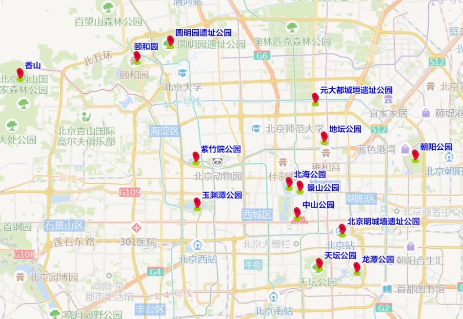 近期,部分公园在最佳赏花期内,预计本周末仍是赏花客流高峰期,市民春季出游活动增多,去往香山、景山、北海、圆明园、天坛、中山公园、动物园、龙潭公园、朝阳公园等公园赏花踏青的客流量增加,部分网红景点周边也将出现车流集中的情况。八达岭、环球度假区、故宫、雍和宫、后海—鼓楼—南锣鼓巷地区、首钢园等地标景区热度较高。预计周末期间,香泉环岛、西直门外大街、西三环等公园周边道路车流集中,交通压力较为突出。