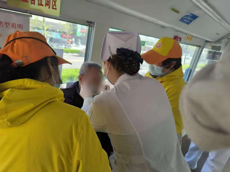 考虑到老人年事已高、伤情较重,引导员们在简单止血后,合力将老人搀扶至附近献血车,寻求专业医护人员救助。她们向医护人员详细说明老人摔倒经过、受伤部位及前期处置情况,医护人员立即为老人进行了伤口处理,并对她们的处置方式予以肯定。