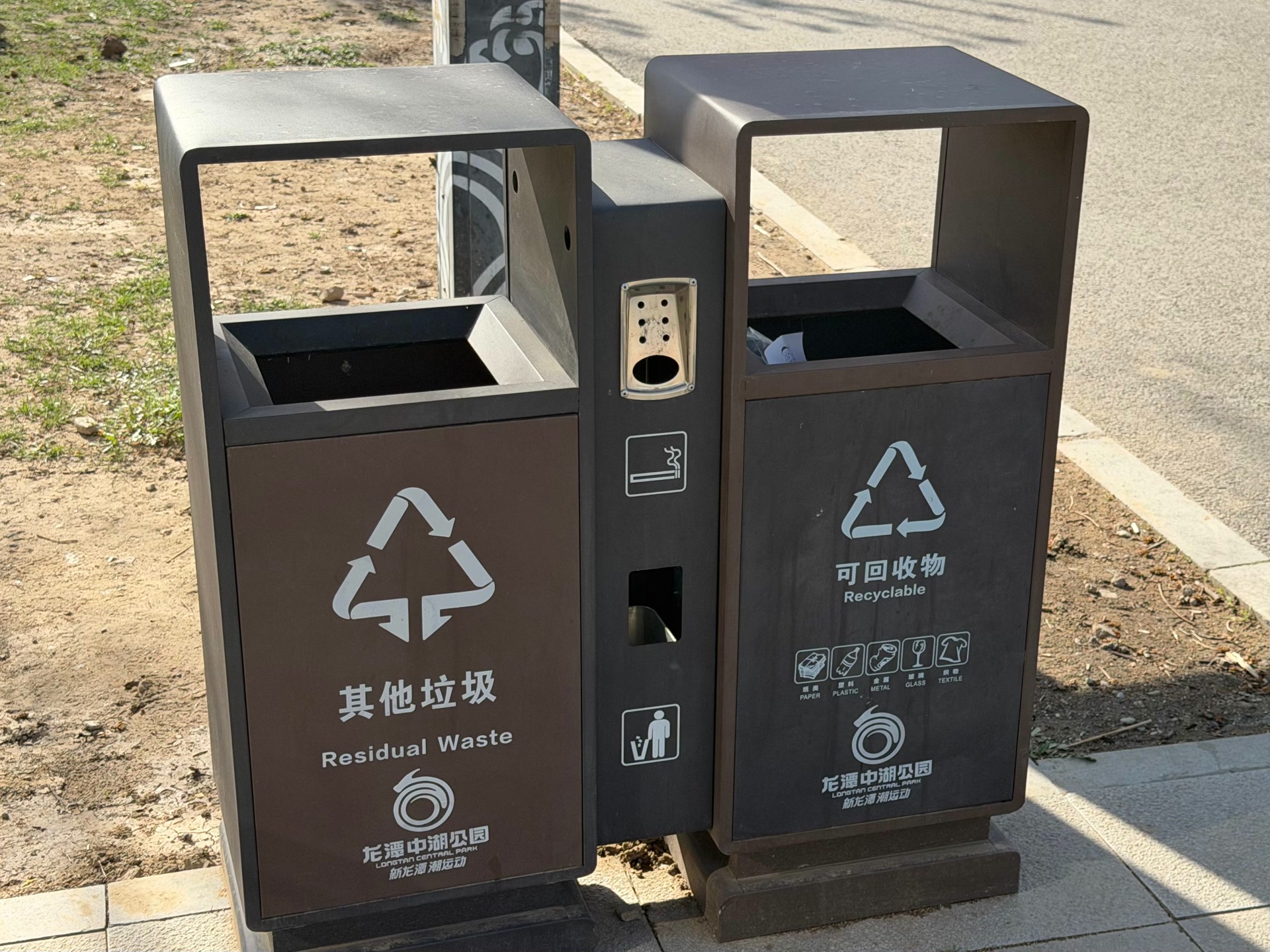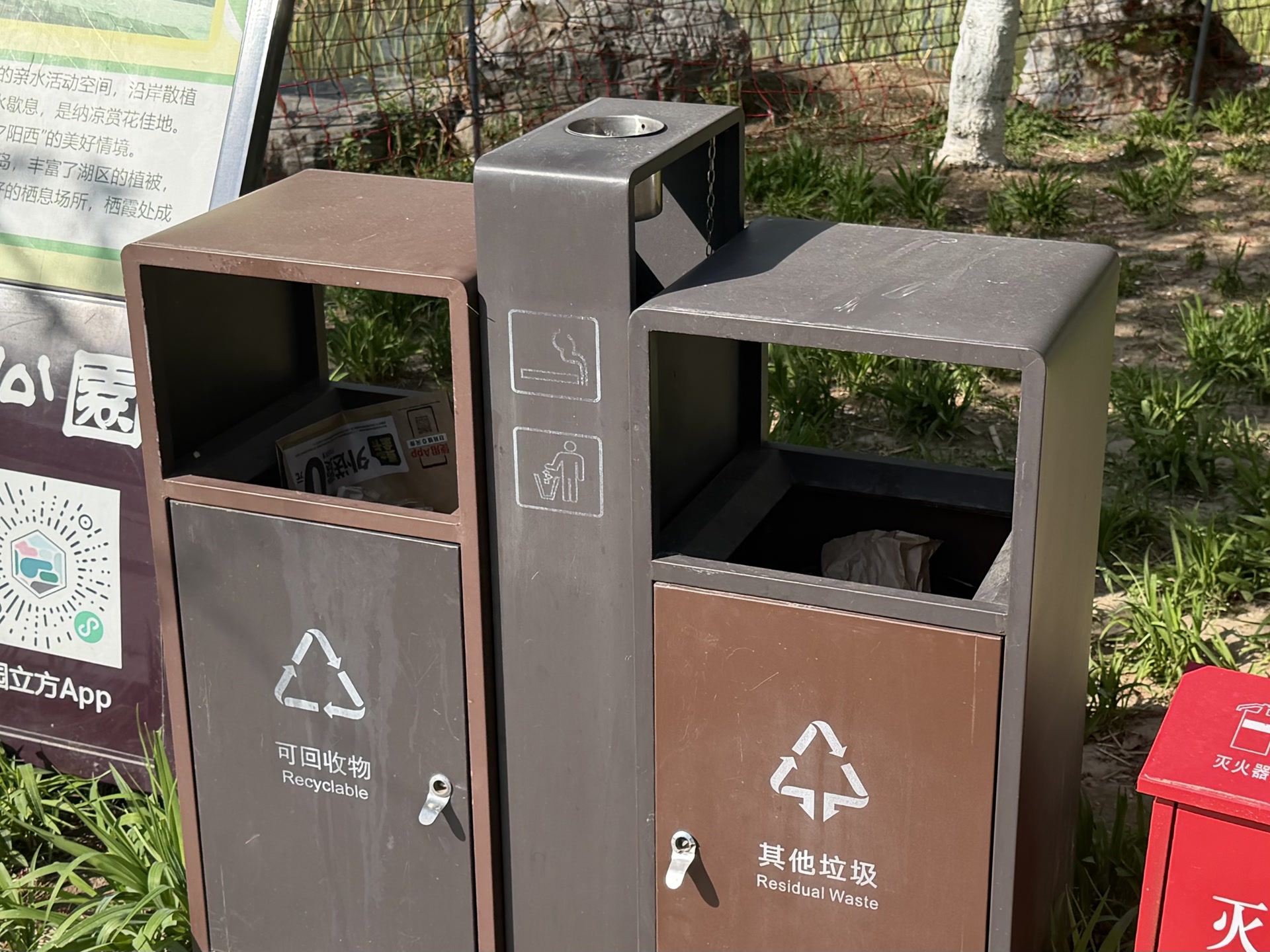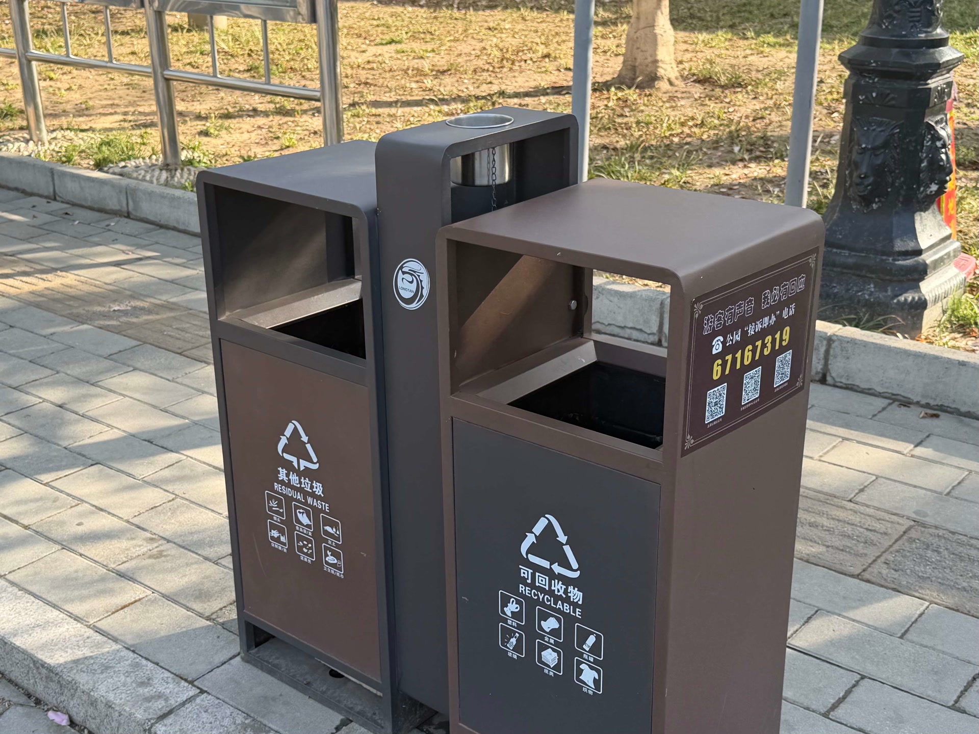 龙潭中湖公园内垃圾桶设有灭烟处