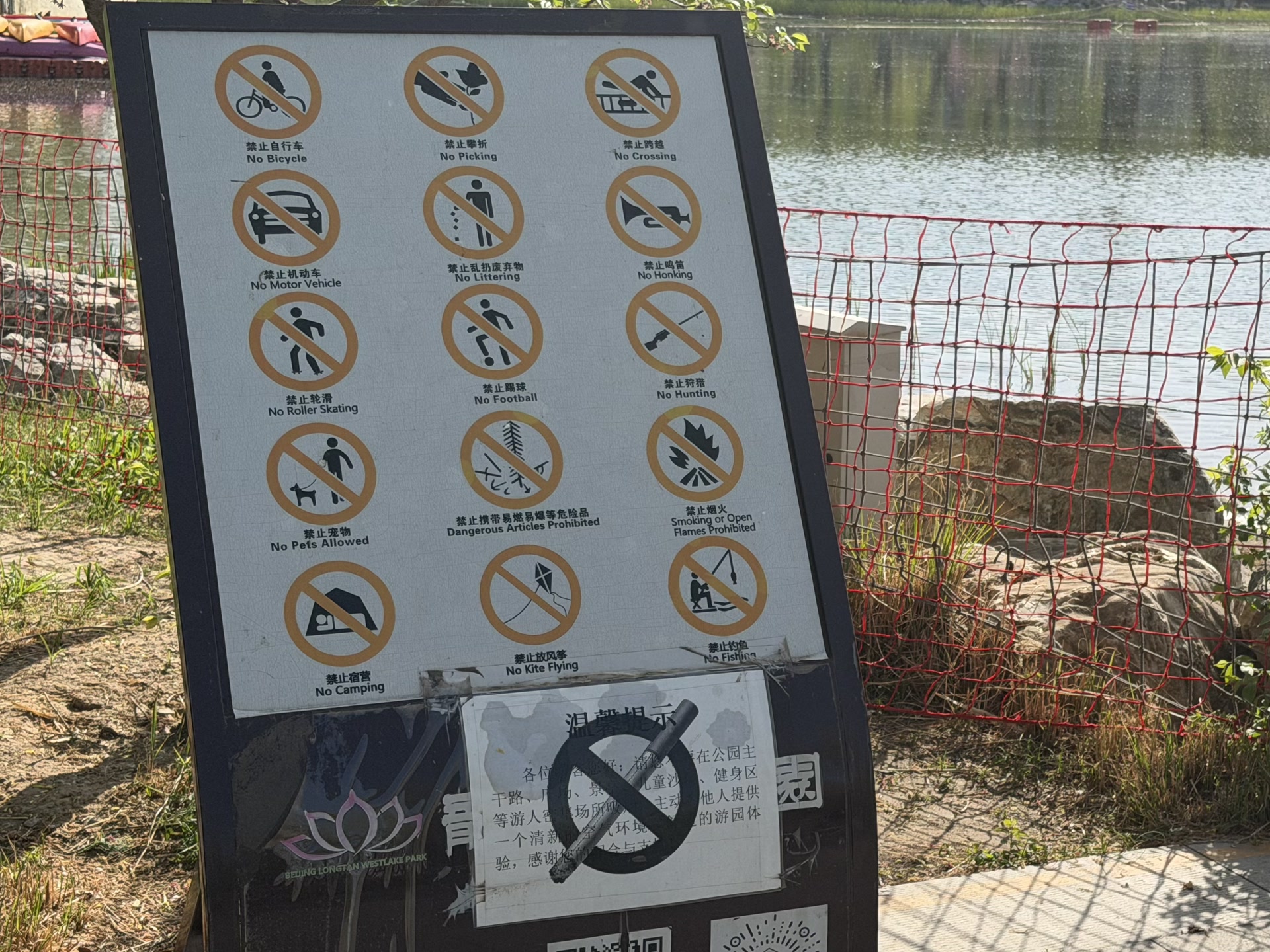 龙潭西湖公园中的禁止吸烟标识