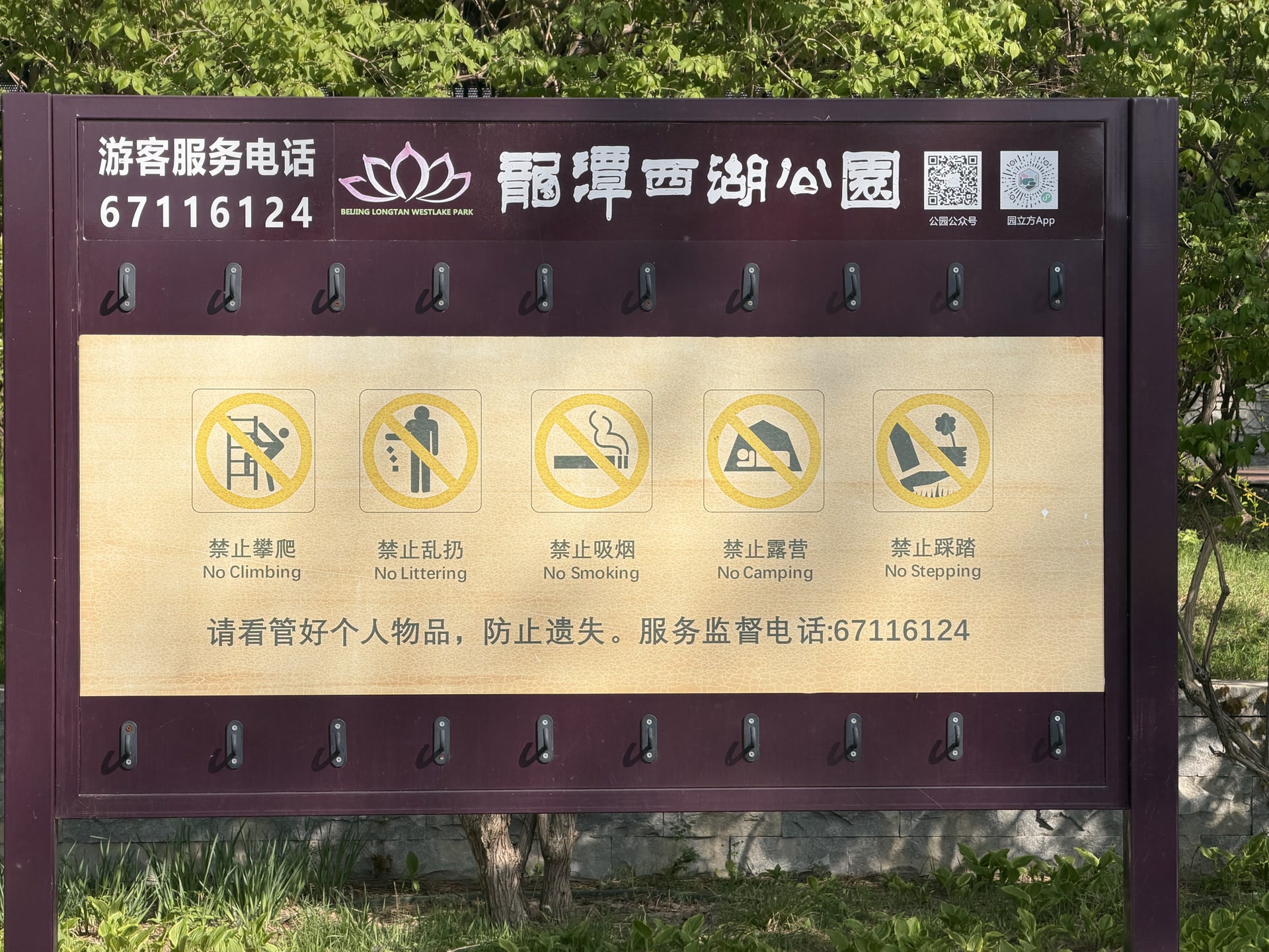 龙潭西湖公园入口处的温馨提示