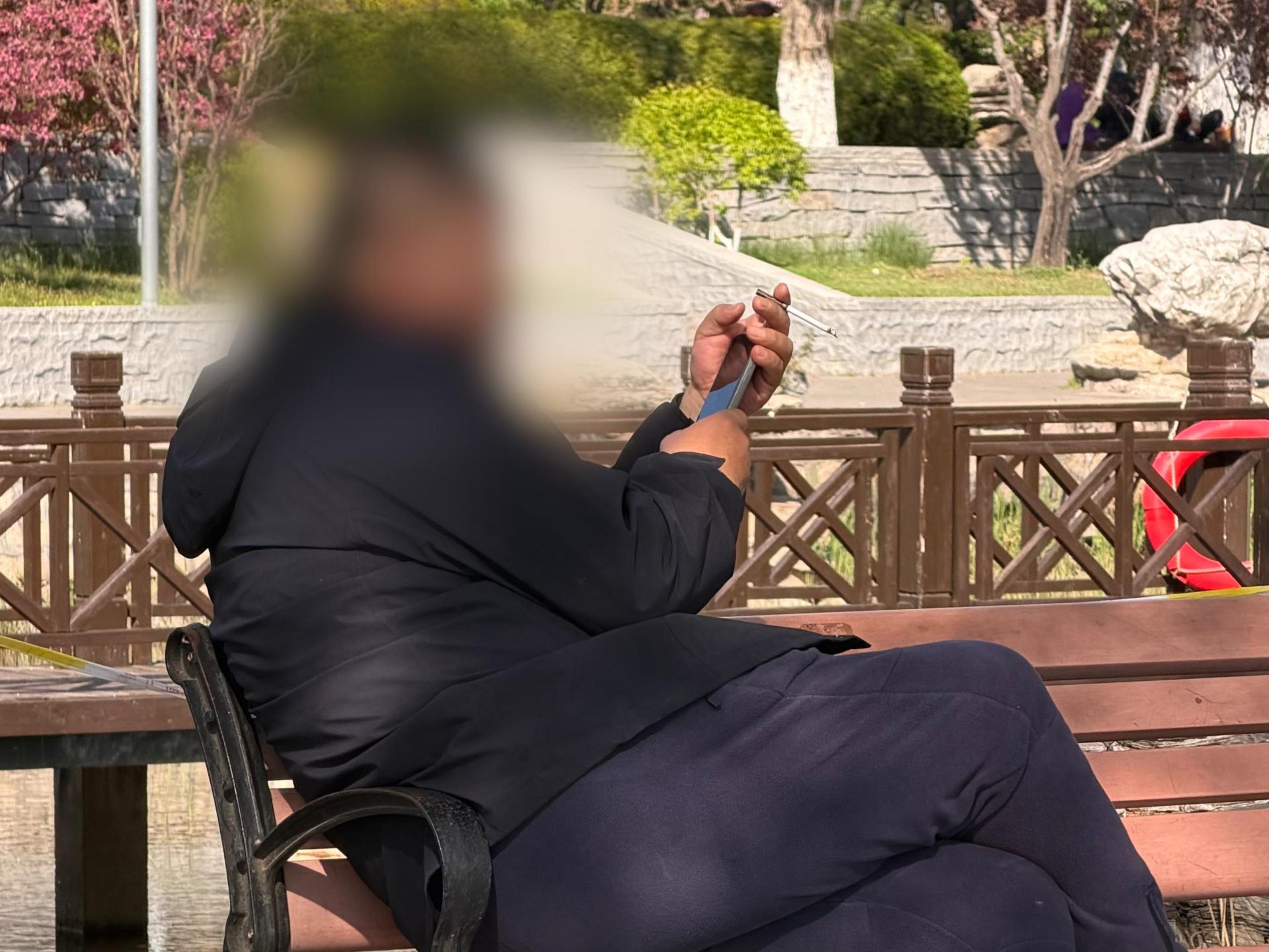 有市民在龙潭西湖公园中吸烟