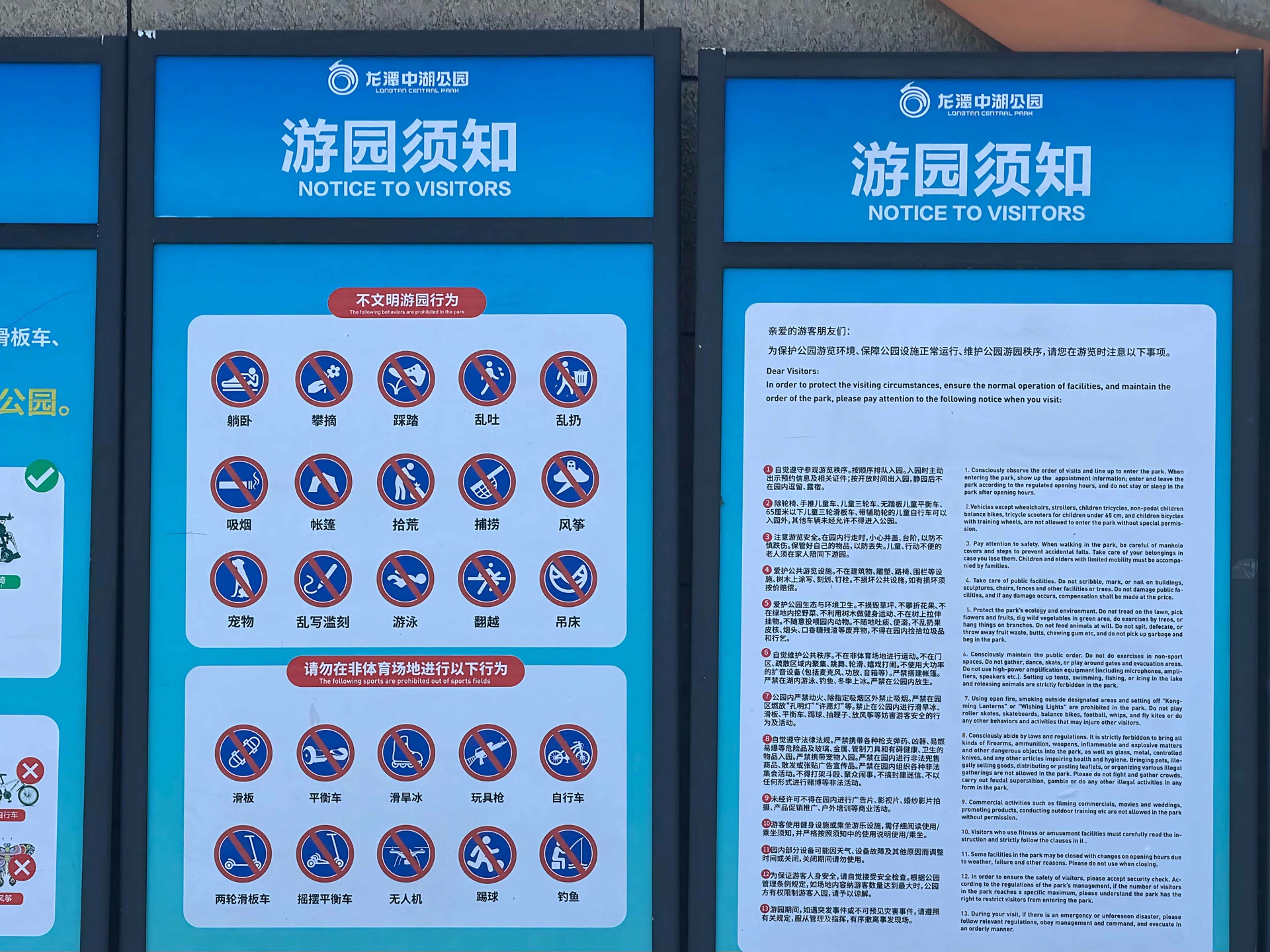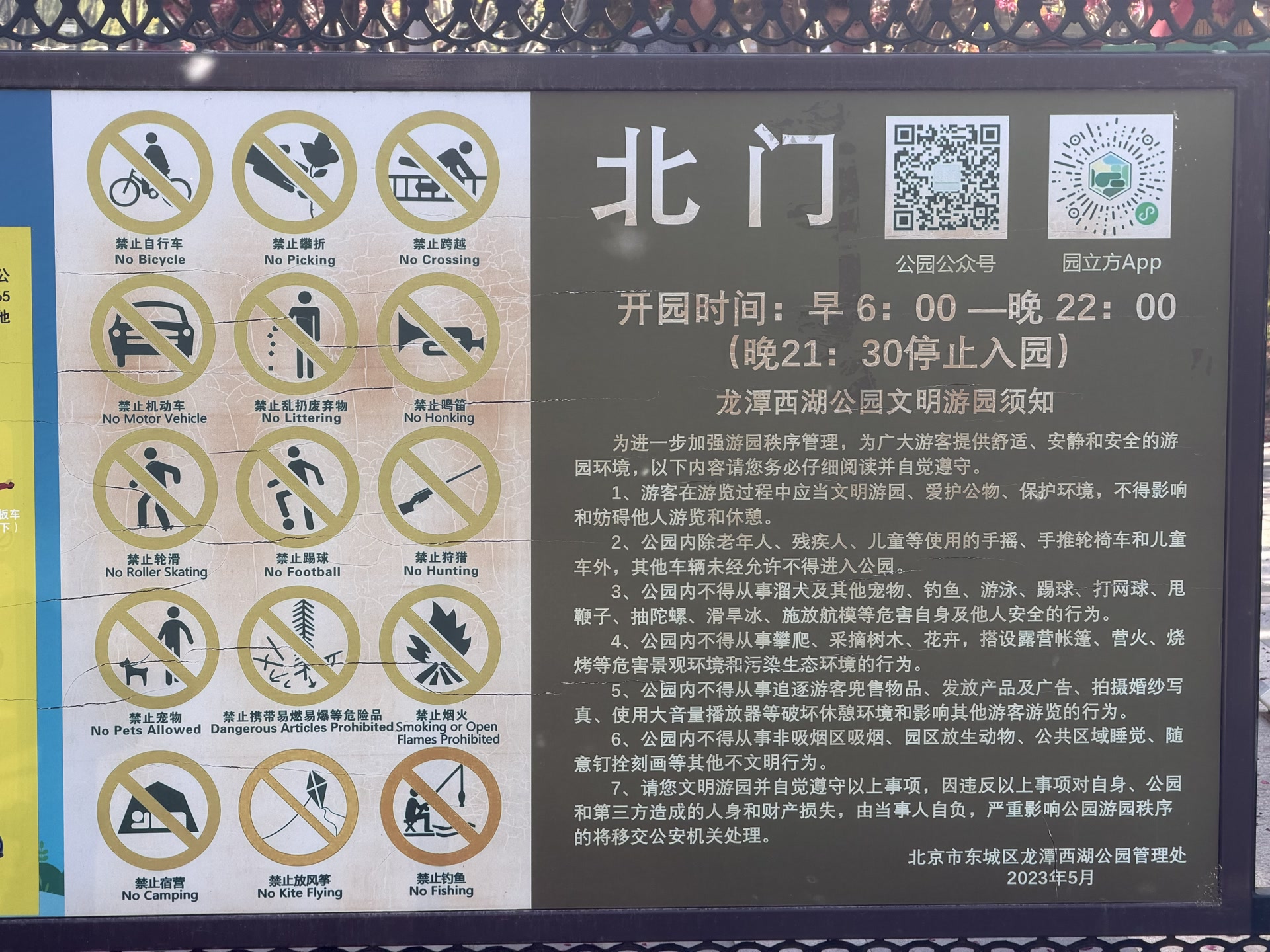 龙潭中湖公园入口处的游园须知
