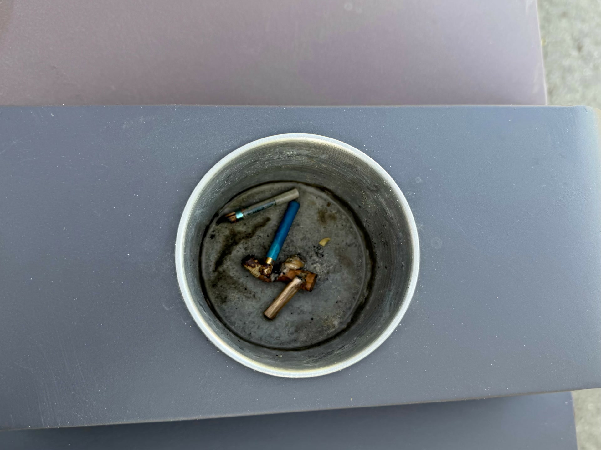 龙潭公园中垃圾桶灭烟处内的烟头