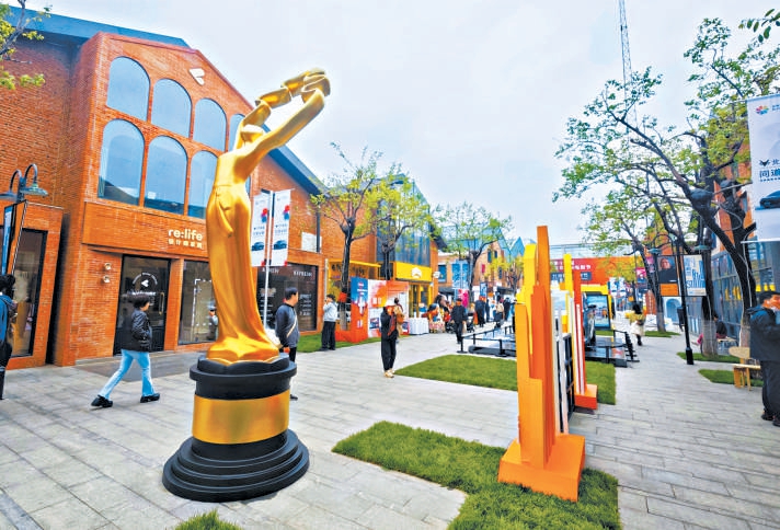 北影节市集现场的“天坛奖”塑像。
