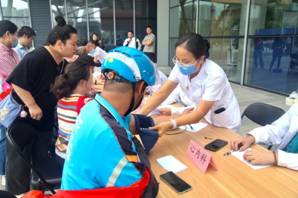 “您好,最左边是血压、血糖检测区,旁边就是消化内科和中医科,我带您过去?”义诊现场,医院专门安排的“导医志愿者”主动上前询问,帮不熟悉流程的从业者引路,省去了“找科室”的时间;基础检测区里,所有快速检测设备提前调试到位,“登记—检测—出结果”全流程严格控制在5分钟内,即使是赶时间送餐、送快递的骑手,也能快速完成检查,不用耽误工作。