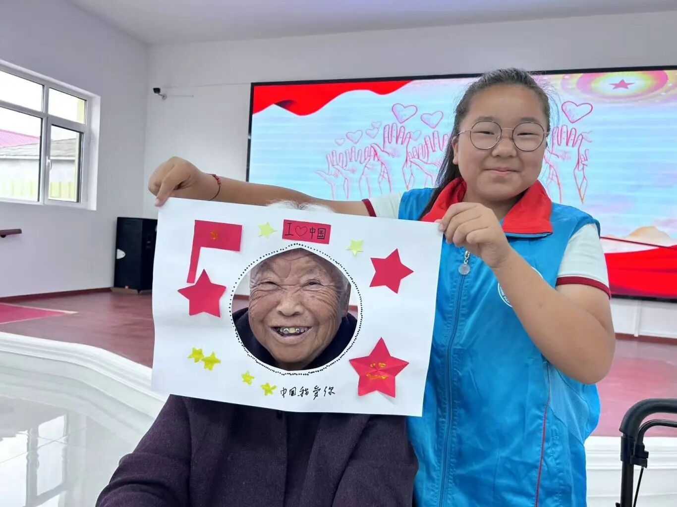 在青少年志愿者和老人的共同创作下,用画笔表达对祖国的深情祝福。一幅幅充满童趣与温情的画作,不仅展现了艺术的魅力,更成为两代人心灵交融的生动见证。