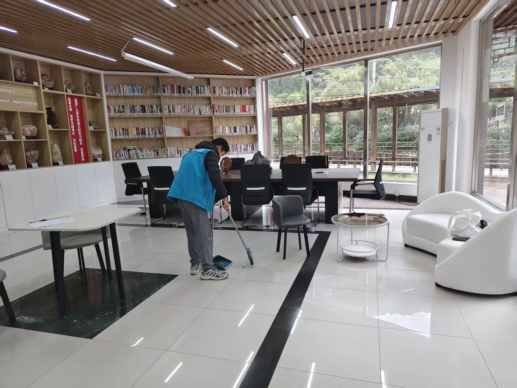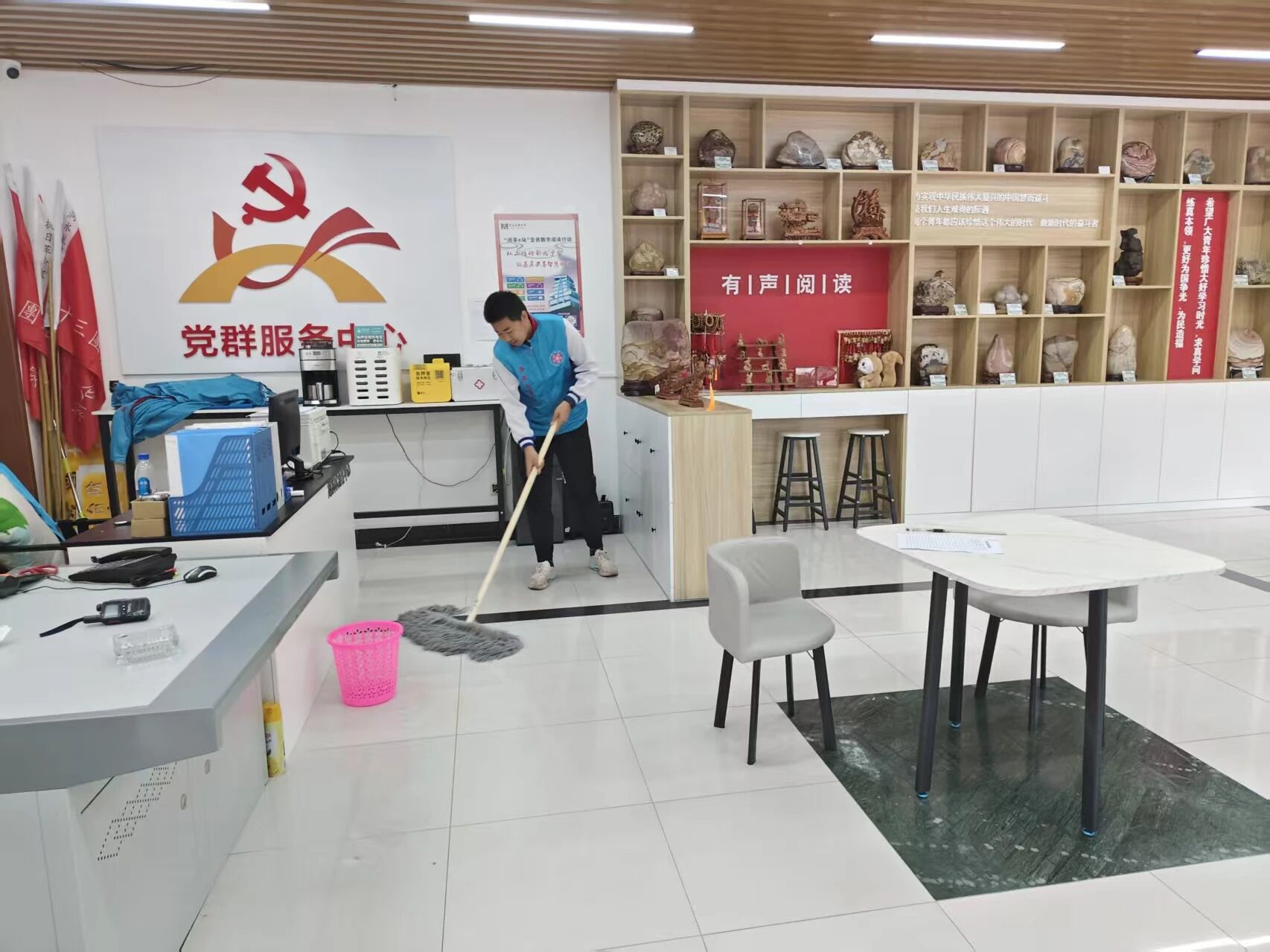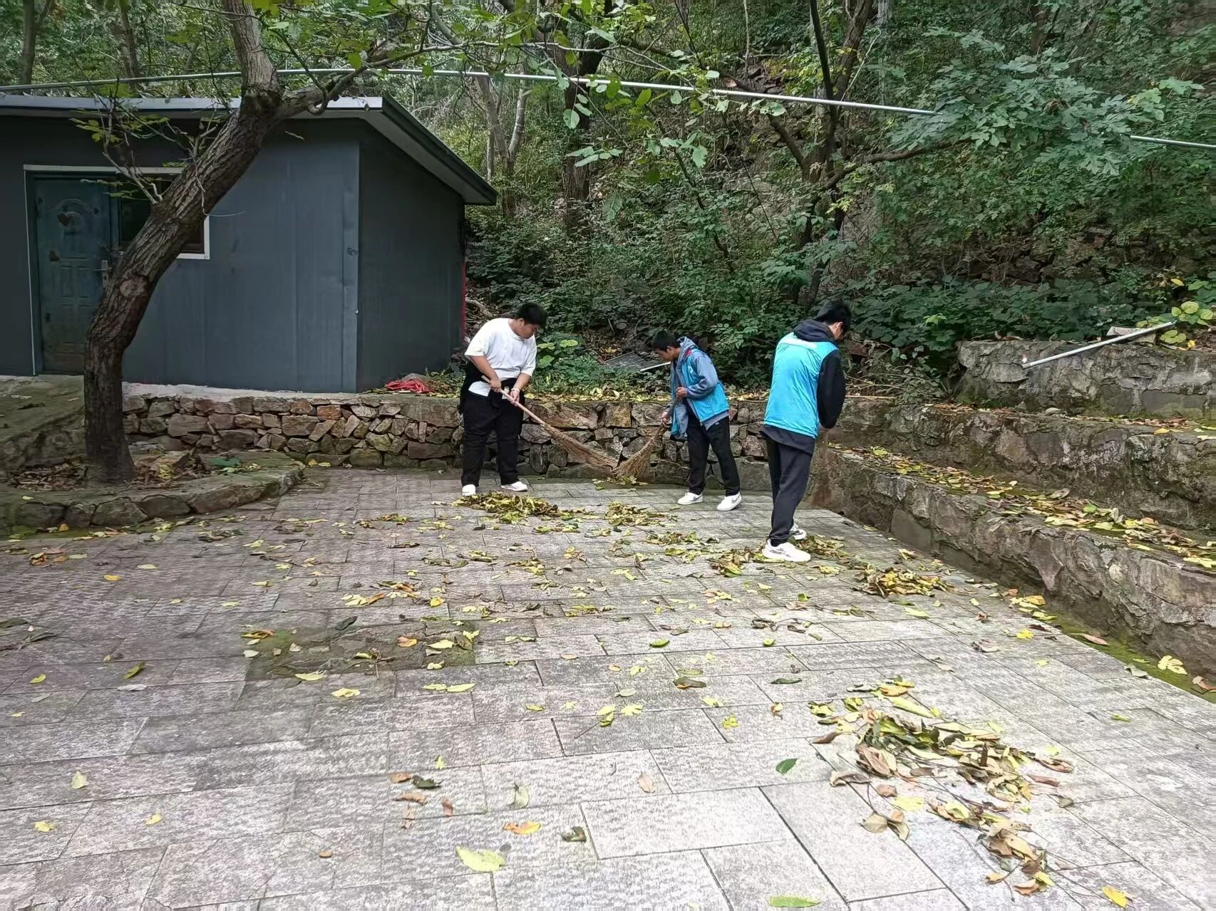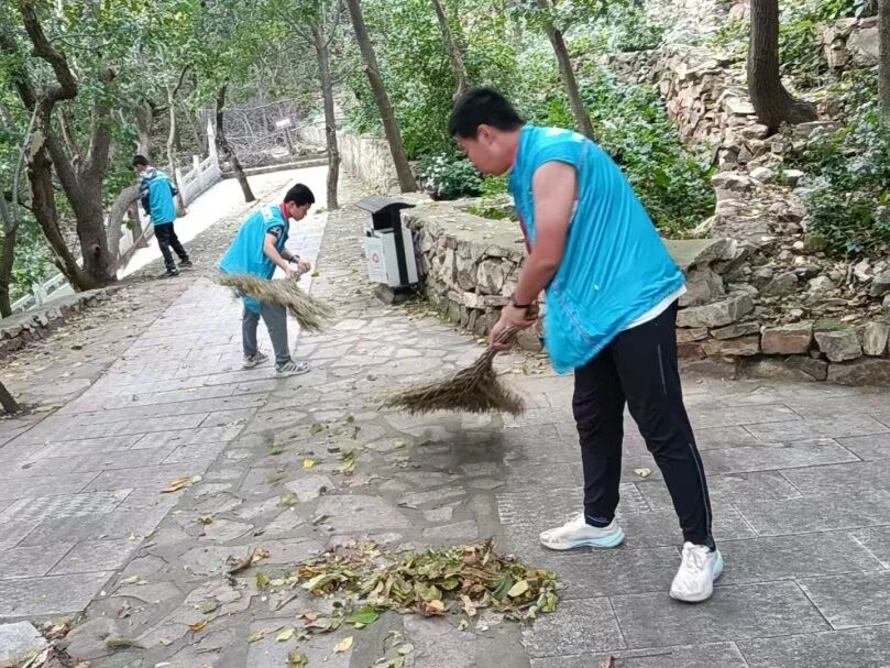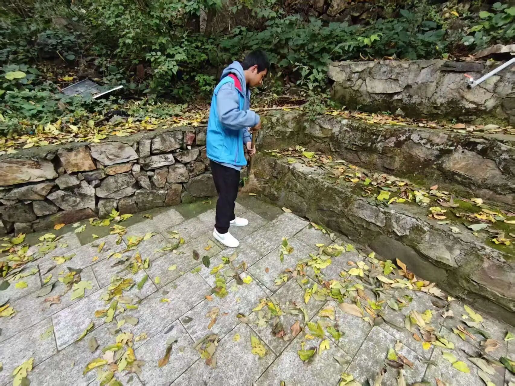 当日一早,志愿者们便先行来到景区的党群服务中心,认真地进行扫地、拖地等清洁工作,以窗明几净的环境迎接游客的到来。深秋时节,气温明显下降,湖洞水景区内落叶纷飞。面对繁重的清扫任务,志愿者中的小伙子们发扬不怕苦、不怕累的精神,齐心协力,将散落各处的落叶清扫归拢,有效维护了景区的整洁面貌,为游客创造了安全舒适的游览环境。