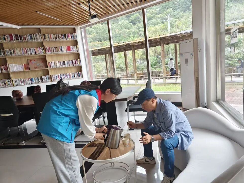 在景区入口处,他们耐心引导,确保游客有序出入。在党群服务中心“红色驿站”的休息点,志愿者们热情地为往来游客递上一杯杯暖心的热水,驱散深秋的寒意;寒风虽冷,但志愿者们用真诚的微笑和忙碌的身影,构筑起一道温暖的风景线。