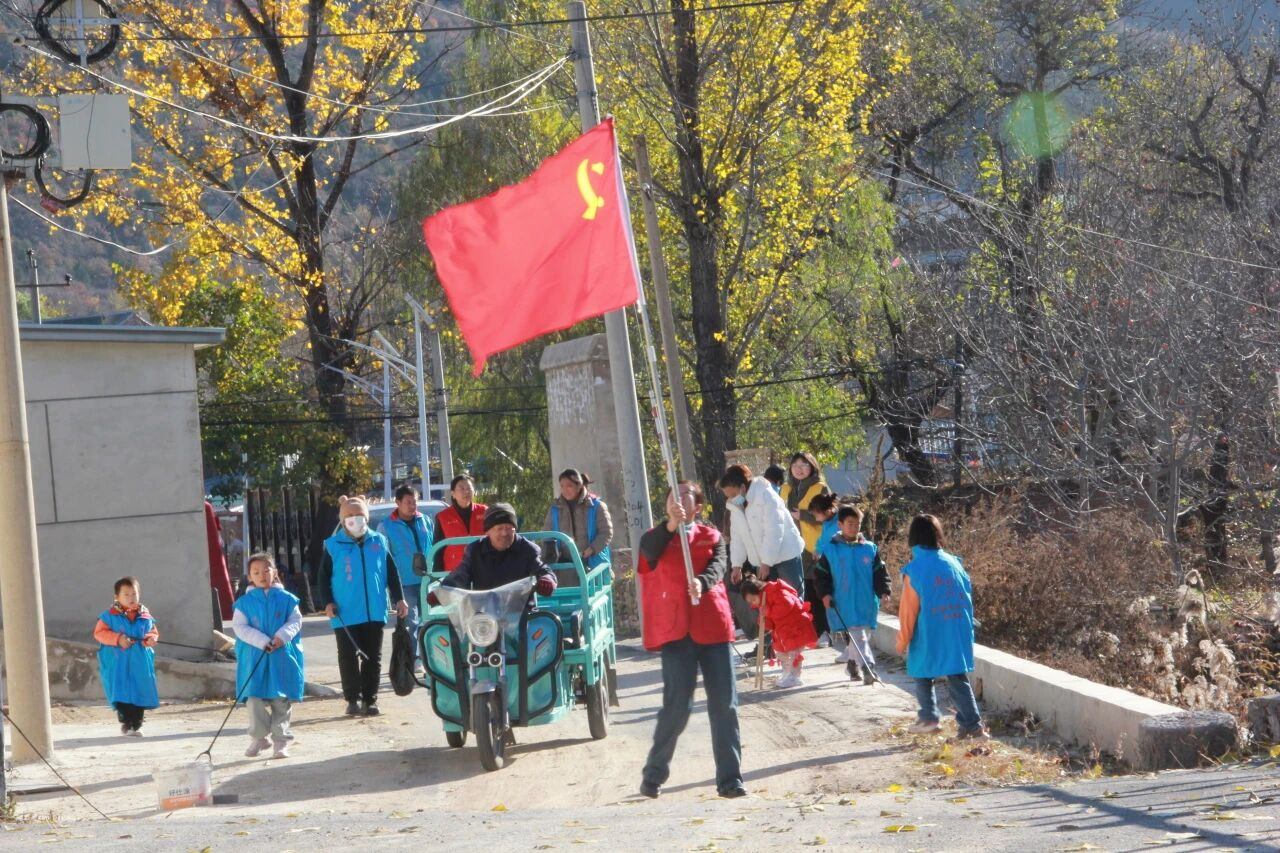 清晨的南山村,鲜红的党旗在志愿服务队前列高高飘扬。党员先锋以身作则、带头示范,带领村民志愿者们手持扫帚、铁钳等工具,集中捡拾村内道路沿线的白色垃圾与枯枝落叶,对主干道、健身广场、房前屋后等关键区域开展全方位清理。