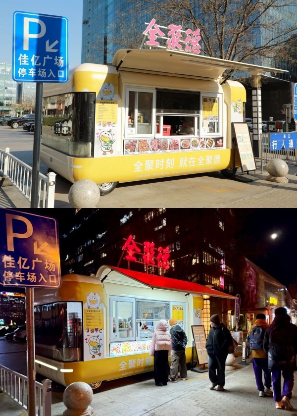 为贴近社区多样化饮食需求,全聚德厨师团队对传统菜品进行创新改良,将烤鸭技艺融入街头小吃,推出特色烤鸭煎饼、酱香猪蹄、炸丸子等风味餐食,搭配油条、鲜肉包、现磨豆浆等日常早点与工作餐,每日更新菜品的灵活模式,让居民在家门口就能尽享老字号的匠心味道。自运营以来,餐车复购率持续攀升,不仅收获了可观的经济效益,更实现了全聚德从堂食向社区多场景服务的突破,以亲民姿态赢得消费者的广泛认可。