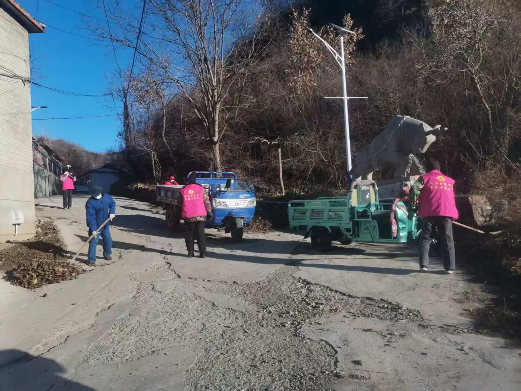 活动中,身着统一标识的“金玫瑰”志愿者们充分发扬不怕脏、不怕累的奉献精神,手持清洁工具,深入村庄主干道沿线、公共绿地、河道沟渠周边及农业生产区域,对散落、堆积的秸秆、枯枝等各类农林废弃物进行地毯式清理和集中清运。她们分工协作,配合默契,不仅清除了视觉污染和安全隐患,也有效减少了潜在的焚烧风险和土壤污染,促进了资源的合理化处置,为提升乡村整体环境质量贡献了巾帼力量。