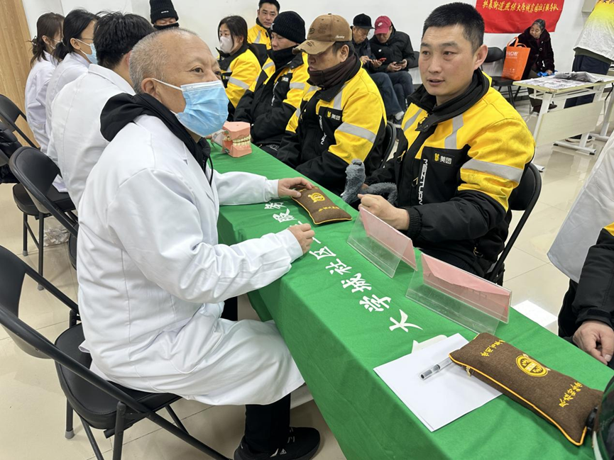 燕保大学城家园社区组织北京工商大学9名青年志愿者,手持“创文明城区 建美丽拱辰”“志愿服务 人人参与”“学雷锋 好榜样”等宣传牌,在社区广场集结。他们以饱满的热情和昂扬的姿态,用实际行动践行雷锋精神,为创建文明城区贡献青春力量。同时,燕保大学城家园社区“首都老兵”志愿服务队联合社区卫生服务站,依托“邻聚E家”暖新驿站,为外卖骑手等新就业群体提供中医问诊、口腔检查、基础体检等健康义诊服务。志愿者们贴心引导、周到服务,让新就业群体感受到实实在在的温暖与关怀,以实际行动传承雷锋精神。